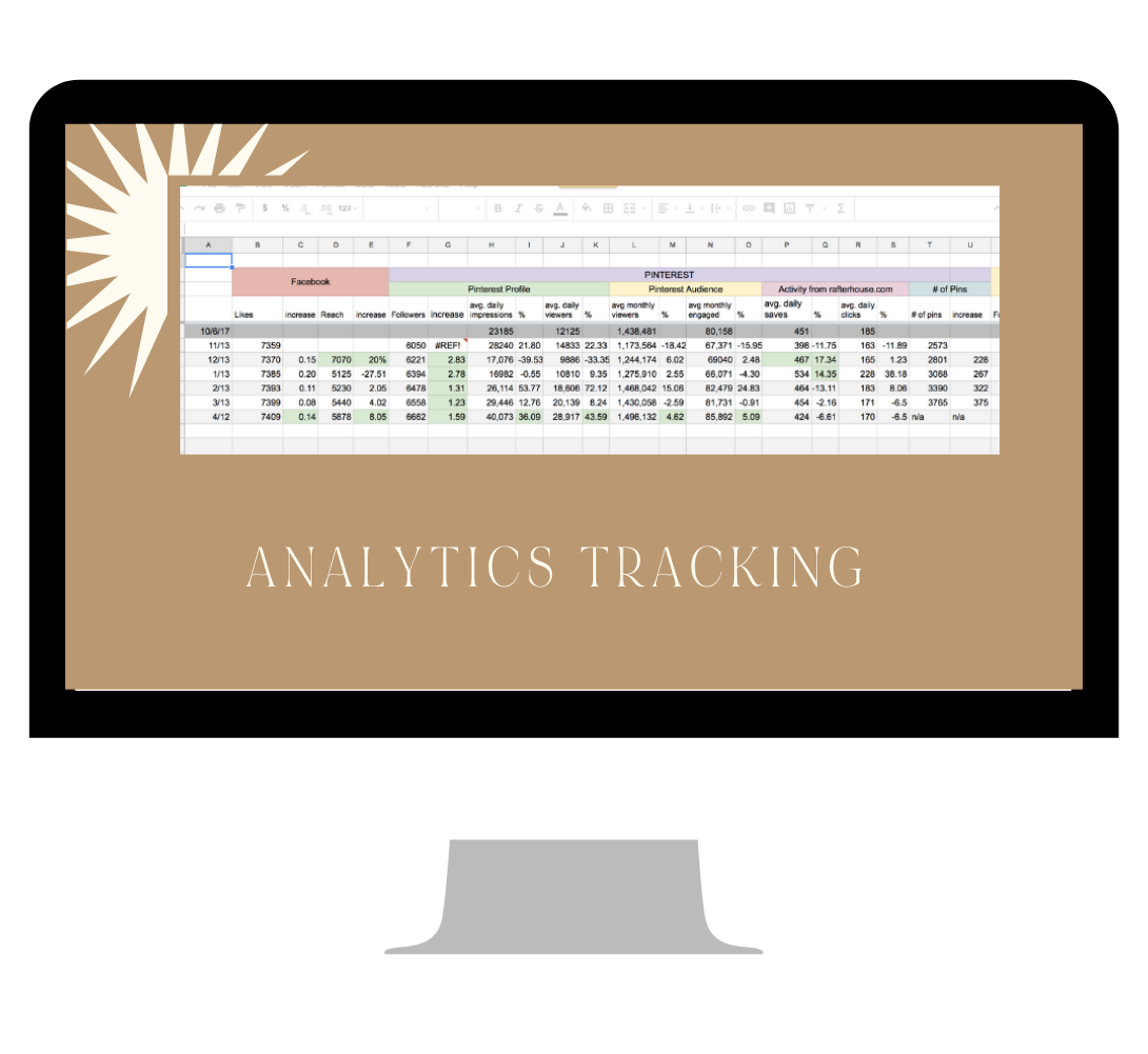 Need a better way to track your (or your clients’) social media growth? I created this Social Media Analytics Tracking Spreadsheet that will help you track key performance indicators across Facebook, Instagram, Pinterest, and Google Analytics and measure their growth.